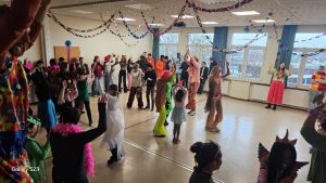 Am letzten Schultag vor den Faschingsferien haben wirmit der ganzen Schule eine Faschingsparty gefeiert. Es gab verschiedene Mottos zum Verkleiden. Die Lehrkräfte hatten das Motto „Flowerpower“. Wir, die Klasse 8, hatten z.B. das Motto „Mafia“. Außerdem hatten wir verschiedene Stationen, wie den Bastelraum, ein Büffet mit Süßigkeiten, Wettessen mit Schokoküssen oder Salzbrezeln, einen Chillraum, eine Cocktailbar, eine Schminkstation und Dosenwerfen. Im Chillraum war es besonders cool, weil einige von uns Karaoke gesungen haben. Zum Start trafen wir uns alleim Musiksaal und haben gemeinsam getanzt undgesungen. Danach durften wir uns frei an den Stationen bewegen. Die Schüler der Klasse 8 und 9 haben zusammen mit den Lehrern die Stationen betreut. Wir besuchten selbst auch alle Stationen. Zum Schluss versammelten wir uns alle im Musiksaal und haben gesungen, getanzt, gefeiert und hatten jede Menge Spaß. Am Schluss gab es noch für jeden einen Berliner. Von Eda und Maya, Klasse 8